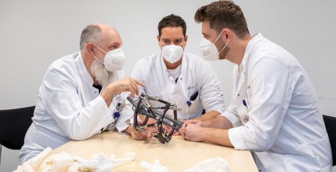 The staff of the Department of Trauma Surgery and Orthopaedics are engaged in the 3D planning, visualisation and haptic representation of complex fractures with the aid of additively manufactured, patient-specific drilling and sawing jigs as well as teaching and study models.