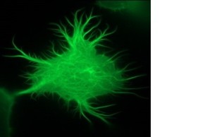 Almost all processes in multicellular organisms are determined by an -optimally perfect- interaction between individual cells. Communication between cells (signal transduction) can lead to very dynamic processes such as cell division, endocytosis and exocytosis as well as movement (migration and invasion) of cells. Immune cells belong to the most mobile cells in the human organism, and are attracted to the site of infection by chemokines. However, nerve cells (neurons), bone cells (osteoblasts, osteoclasts), skin and connective tissue cells are also very mobile. During migration, there is a constant assembly and disassembly of the cytoskeleton, which consists of intermediate and actin filaments as well as of microtubules. The driving force for migration is provided by the dynamics of the actin filaments. Here, actin filaments are built up at the anterior end of the cells and degraded at the posterior end. These actin filament dynamics are controlled by actin binding proteins. Microtubules, on the other hand, mainly regulate the movement of spindle fibers and the transport of vesicles. Therefore, cell division and protein secretion are largely controlled by microtubules. Similar to actin filaments, microtubule dynamics are regulated by associated proteins.