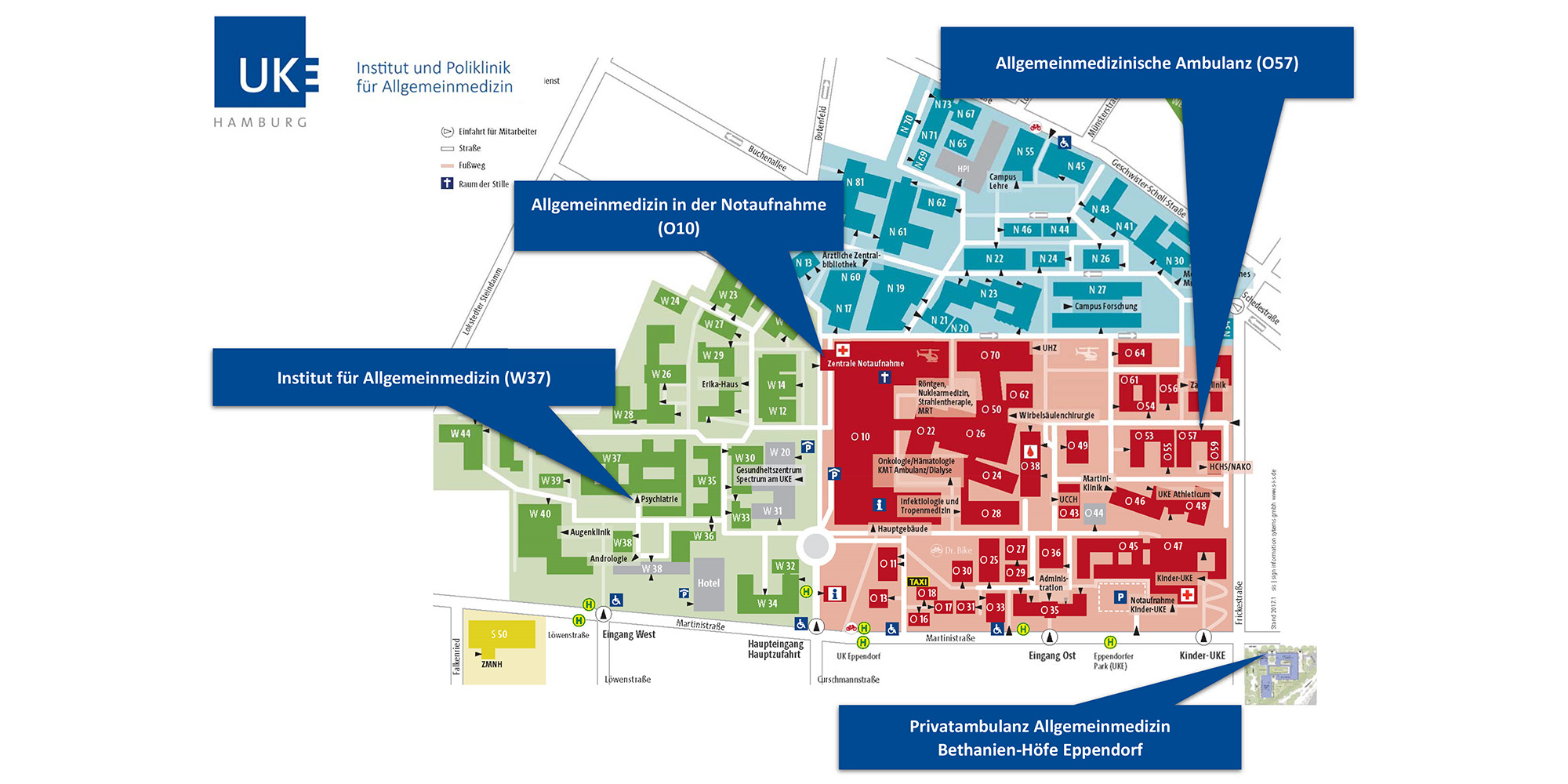 The department is cooperating with a number of institutions from within the Center for Health Care Research and the Center for Psychosocial Medicine. External cooperation partners include the Associations of Statutory Health Insurance Physicians, the Institute for Quality and Economic Efficiency (IQWIG, Cologne) and the aQua Institute for Quality in health care (Gottingen). Research cooperation exist to a number of departments of general practice from German universities (e.g. Gottingen, Heidelberg or Munich). International research contacts to working groups in the Netherlands, Great Britain and Australia are maintained via the WONCA (World Organization of Family Doctors), GIN (guidelines international network) and the EPCCS (European Primary Care Cardiovascular Society).