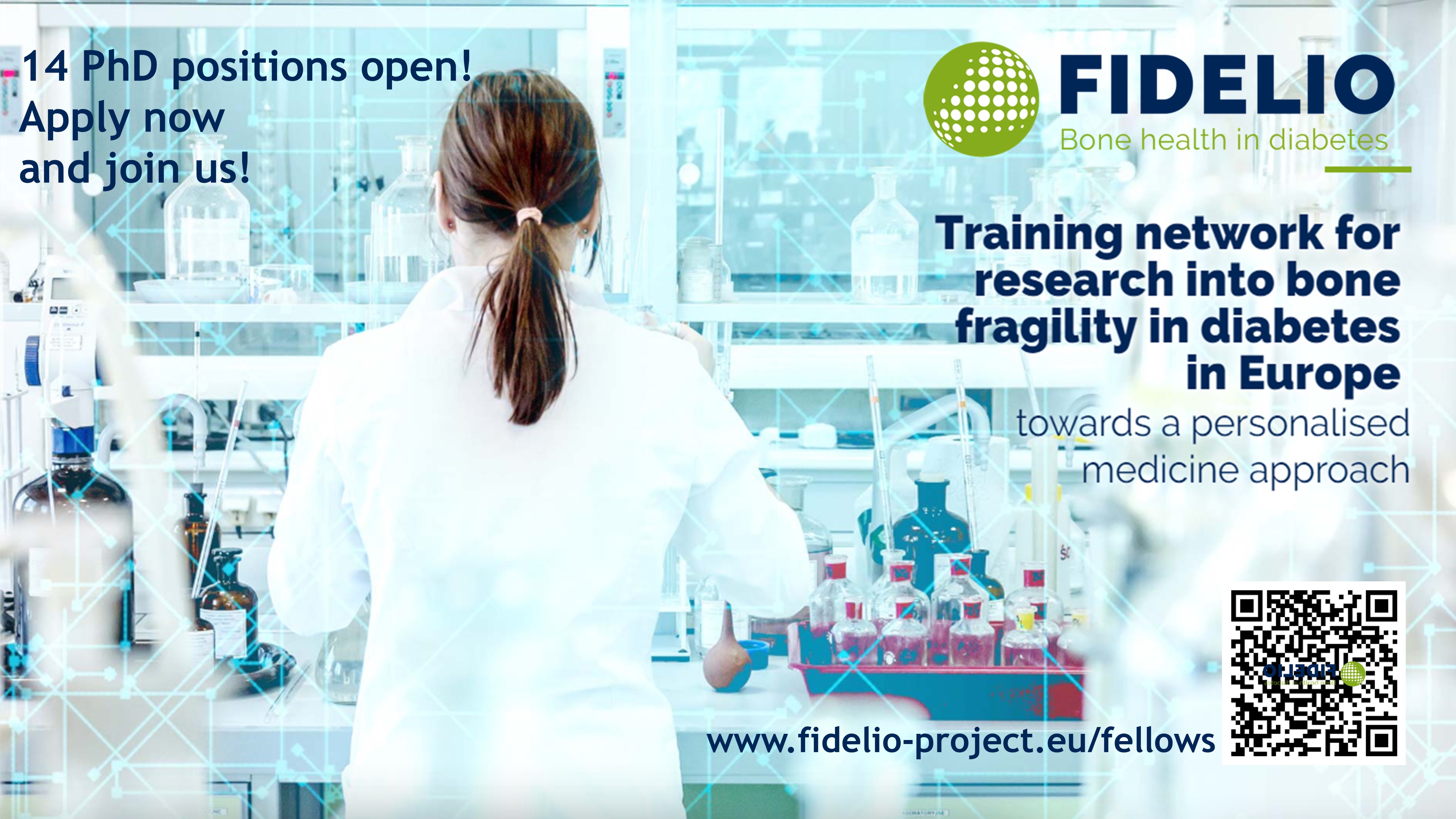 We are currently recruiting enthusiastic PhD students for 2 projects within the FIDELIO (Training network for research into bone Fragility In Diabetes in Europe – towards a personaLised medIcine approach) European Union Horizon 2020 programme. FIDELIO will address different aspects of diabetic bone disease to obtain a comprehensive overview of how diabetes increases fracture risk.